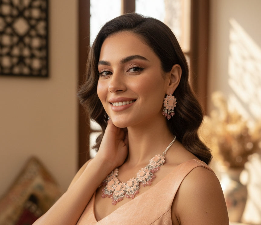 The Elegant Bridal Jewelry Set is a breathtaking statement piece — a perfect blend of traditional craftsmanship and modern royal aesthetics. Designed for brides who dream of a grand yet graceful look, this set adds an aura of timeless sophistication to every wedding moment.